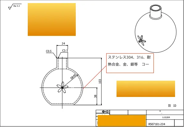 下図面の金属の花瓶がつなぎめ無しの一体物でできます。